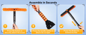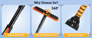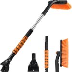 - Extendable Aluminum Alloy Pole (23″-33″): This telescoping pole is constructed from lightweight yet durable aluminum alloy, extending from 23 to 33 inches. The adjustable length helps you clear snow from your vehicle’s windshield and other accessible surfaces with ease