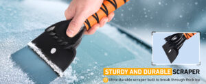 - Sturdy Ice Scraper with Serrated Edge:The integrated ice scraper features a reinforced “Tough Jaws” design with sharp, serrated edges that make quick work of stubborn, thick ice on windshields and windows. Efficiently break up the ice and then use the broad scraper blade to clear it away, saving you time and effort on frosty mornings
