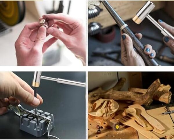 4Pcs replaceable hammer heads(1 brass, 1 chrome, 1nylon in white and 1 rubber in black);