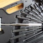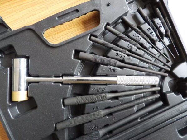 8Pcs copper-tipped punches 1/8″, 9/64″, 5/32″, 3/16″, 7/32″, 1/4″, 9/32″ and 5/16″.