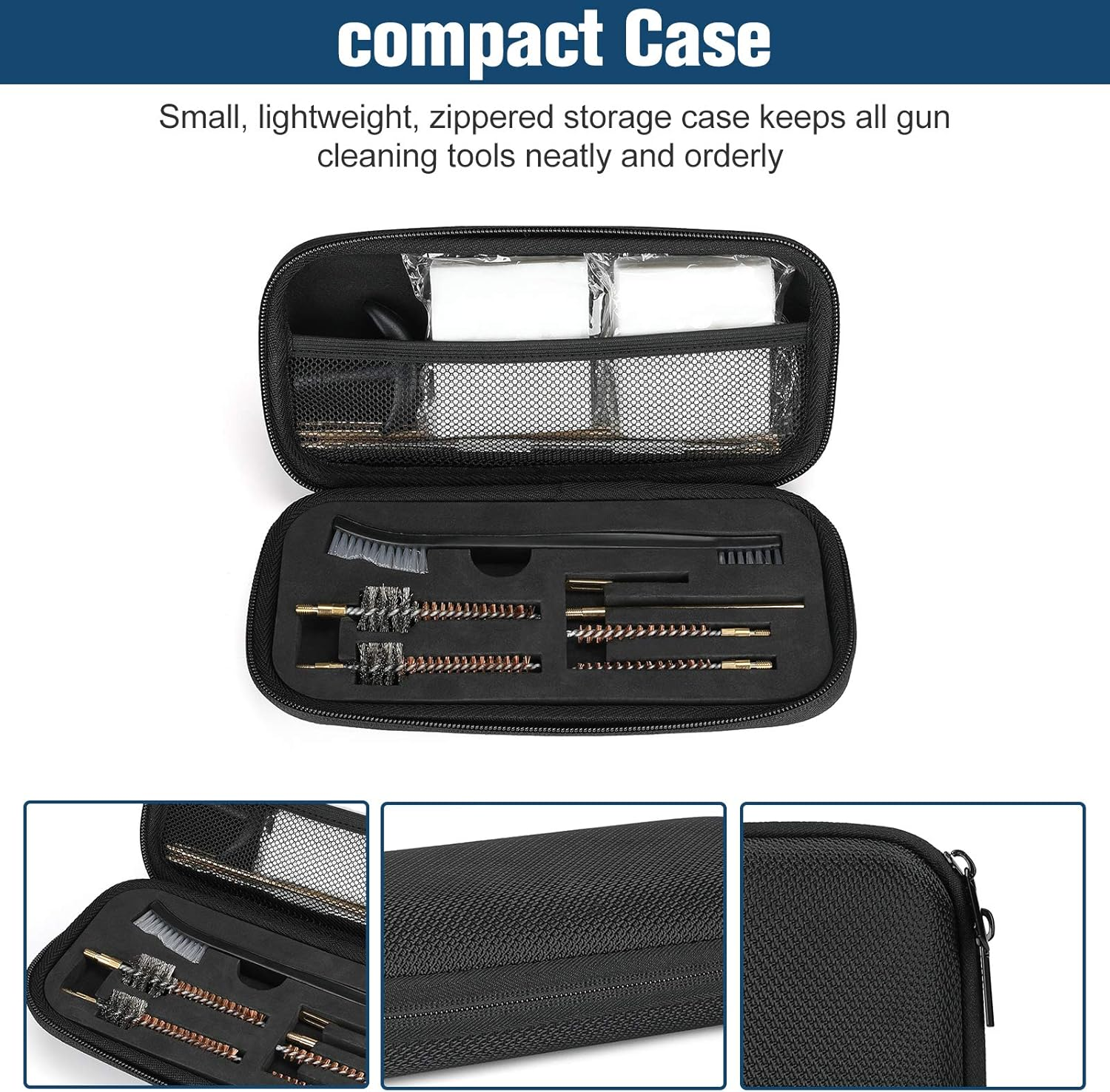 Compact Case: Small, lightweight, zippered storage case keeps all gun cleaning tools neatly and orderly and easily fits into any range bag