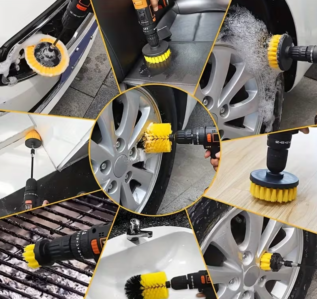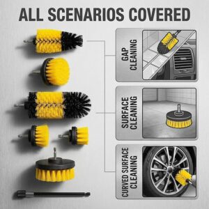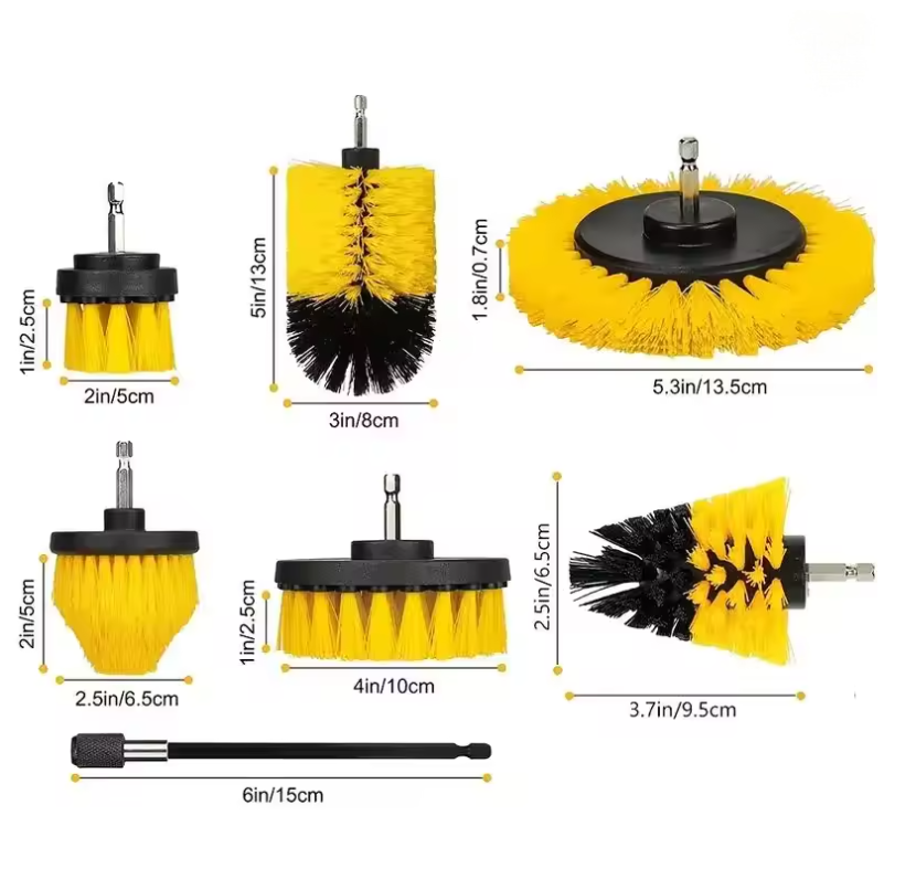 7-Piece Versatility for Every Task:Includes 7 differently shaped brushes + an extension rod, covering all cleaning needs—from large floors to tiny crevices (e.g., tile grout, car wheel gaps).