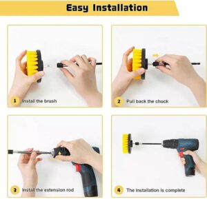 Easy Installation & Universal Compatibility:1/4” quick-release shaft works with most handheld electric drills. The extension rod extends your reach, making high or tight spots (e.g., ceiling corners) easy to clean.