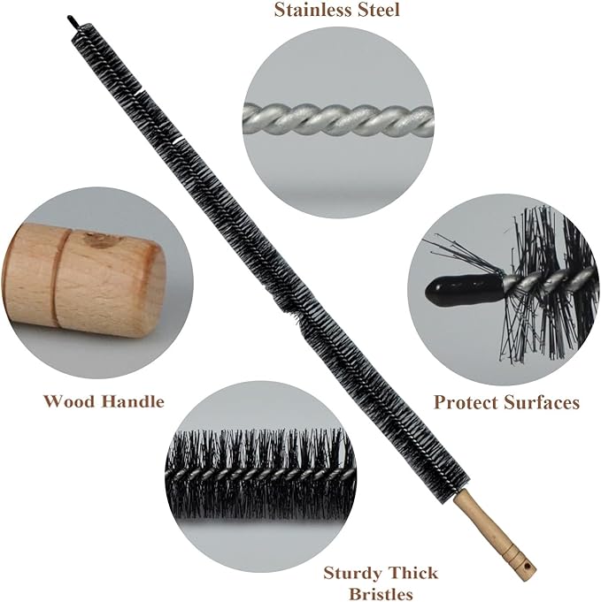 Size Information: Premium handle(4.5″), long and flexible stainless steel wire shaft(27″ ), Sturdy and thick bristles(22.5″). Good working performance and high quality.