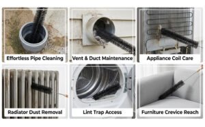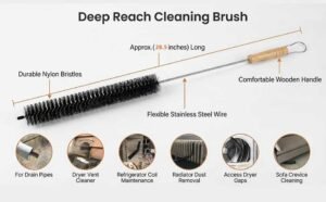 • Regularly cleaning your dryer vent with this lint remover helps prevent dangerous dryer vent fires caused by lint accumulation. For deeper and narrower crevices, it is recommended to use this brush in conjunction with a dryer lint vacuum cleaner for optimal results.