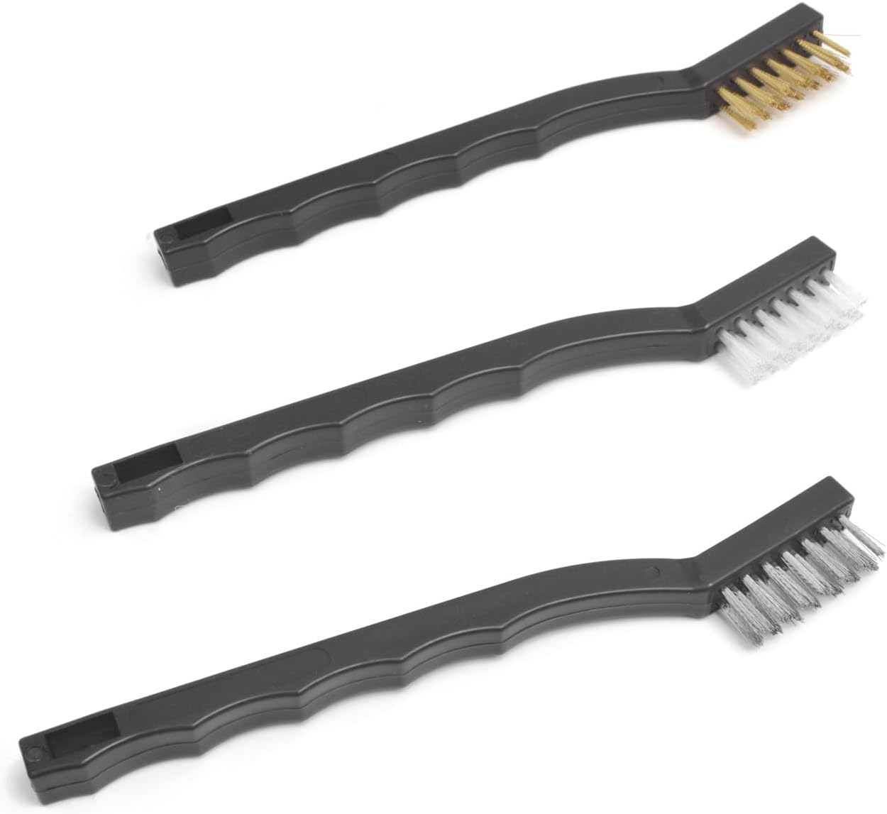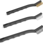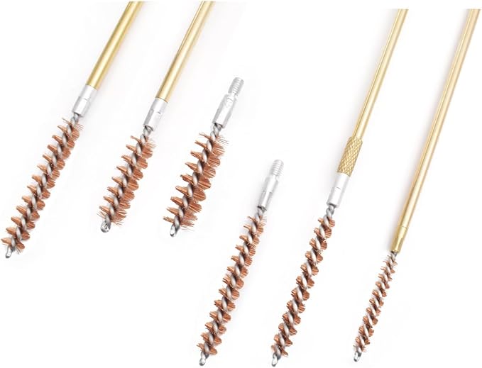 The gun cleaning kit comes with 3 utility brushes: stainless steel brush, brass brush, and nylon brush.