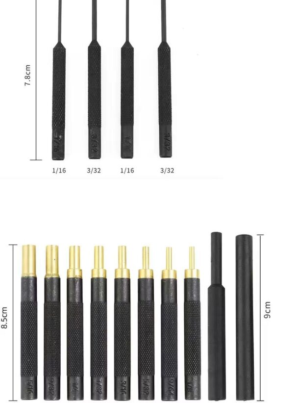 2Pcs roll pin punches including 1/16″ and 3/32″;